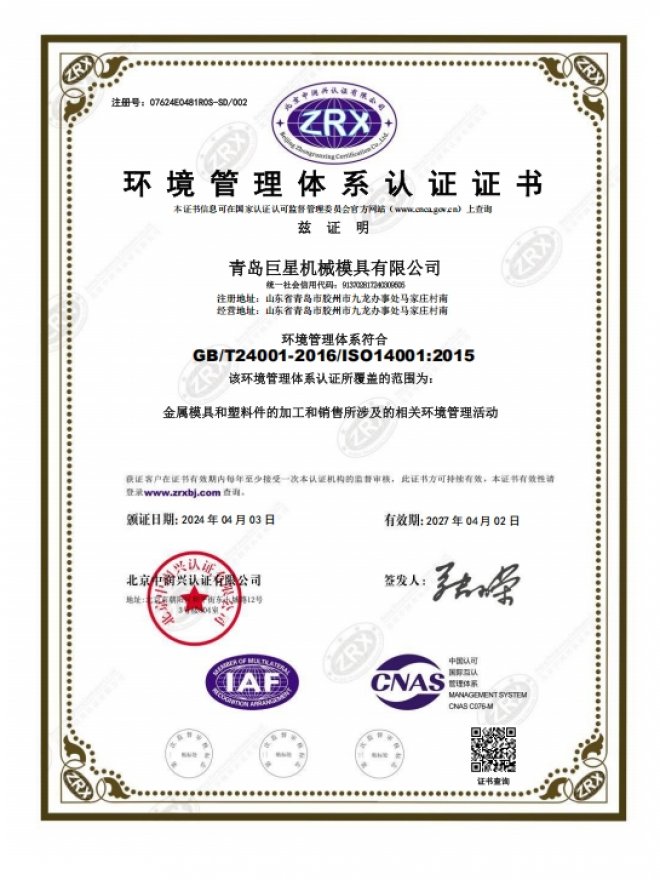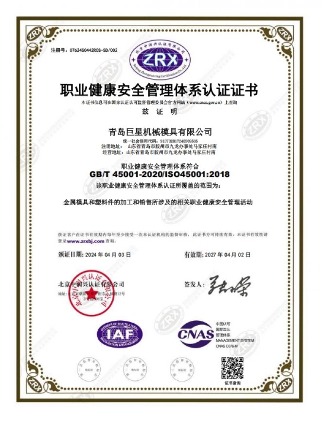 青島巨星機械模具有限公司位于美麗的膠州灣畔——青島市膠州市。成立于1995年。多年來一直致力于塑料模具,金屬沖壓模具,橡/硅膠模具,板片材擠出模具等模具的研發(fā)制造,并且配有塑料制品標準化生產(chǎn)車間,90T-800T各型號注塑機齊全,可為您提供模具研發(fā)與產(chǎn)品生產(chǎn)一站式服務(wù),本司已通過ISO9001質(zhì)量管理、ISO14001環(huán)境管理、ISO45001職業(yè)健康安全管理等體系認證。目前已與美國通用汽車,韓國大宇造船、現(xiàn)代重工,俄羅斯,巴西,非洲等國家或地區(qū)的實力公司建立長期合作關(guān)系。